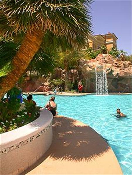 This All Suite hotel provides 600 sq ft guest rooms with crescent shaped couch, separate dressing area, coffeemaker, hair dryer, iron, refrigerator, in room safe, and a glass wall overlooking Las Vegas. Located just 1 block off the strip, this property offers 2563 luxury suites, 15 restaurants, award winning shows, top 10 golf course, pool & spa complex with waterfalls, health club, 120,000 casino, 110,000 meeting & entertainment space and a great Sun set happy hour celebration. \r\n